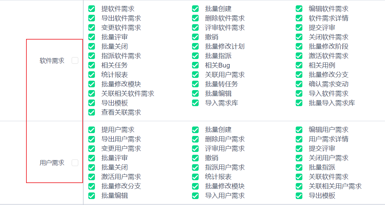 ▼ 后台中用户需求和软件需求的权限进行拆分,支持您根据不同场景分别配置。